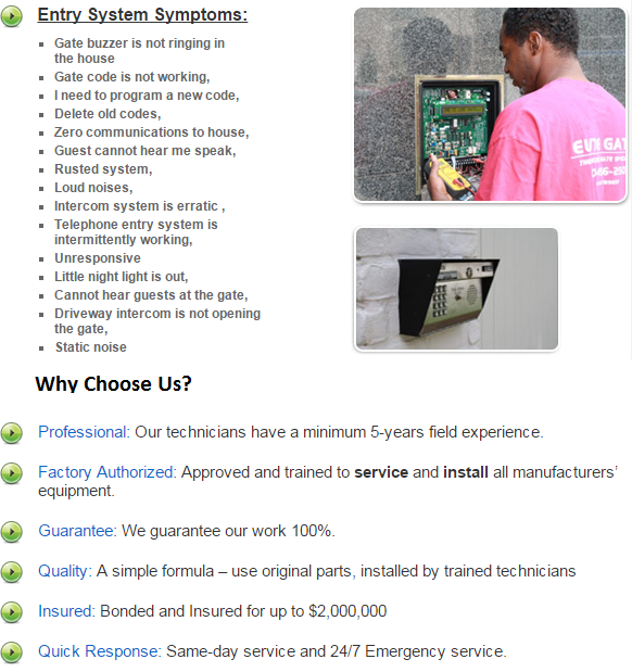 Telephone Intercom Systems: We troubleshoot existing telephone entry systems, intercom systems and gate communication devices. And, if your system is beyond repair McKinney Electric Gate Repair can install a new one right away. 1575 Heritage Drive, McKinney, TX 75069